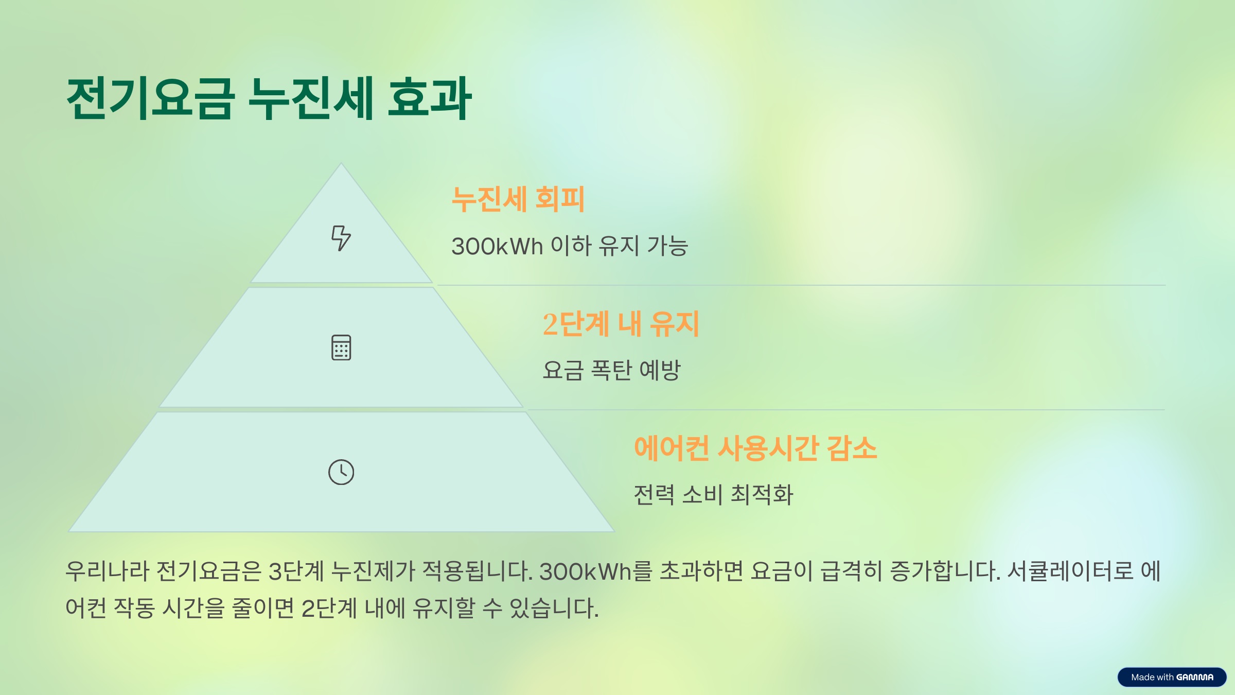 서큘레이터를 활용해 작동 시간을 줄이면 2단계 내에 유지할 수 있어 요금 폭탄을 예방할 수 있습니다.